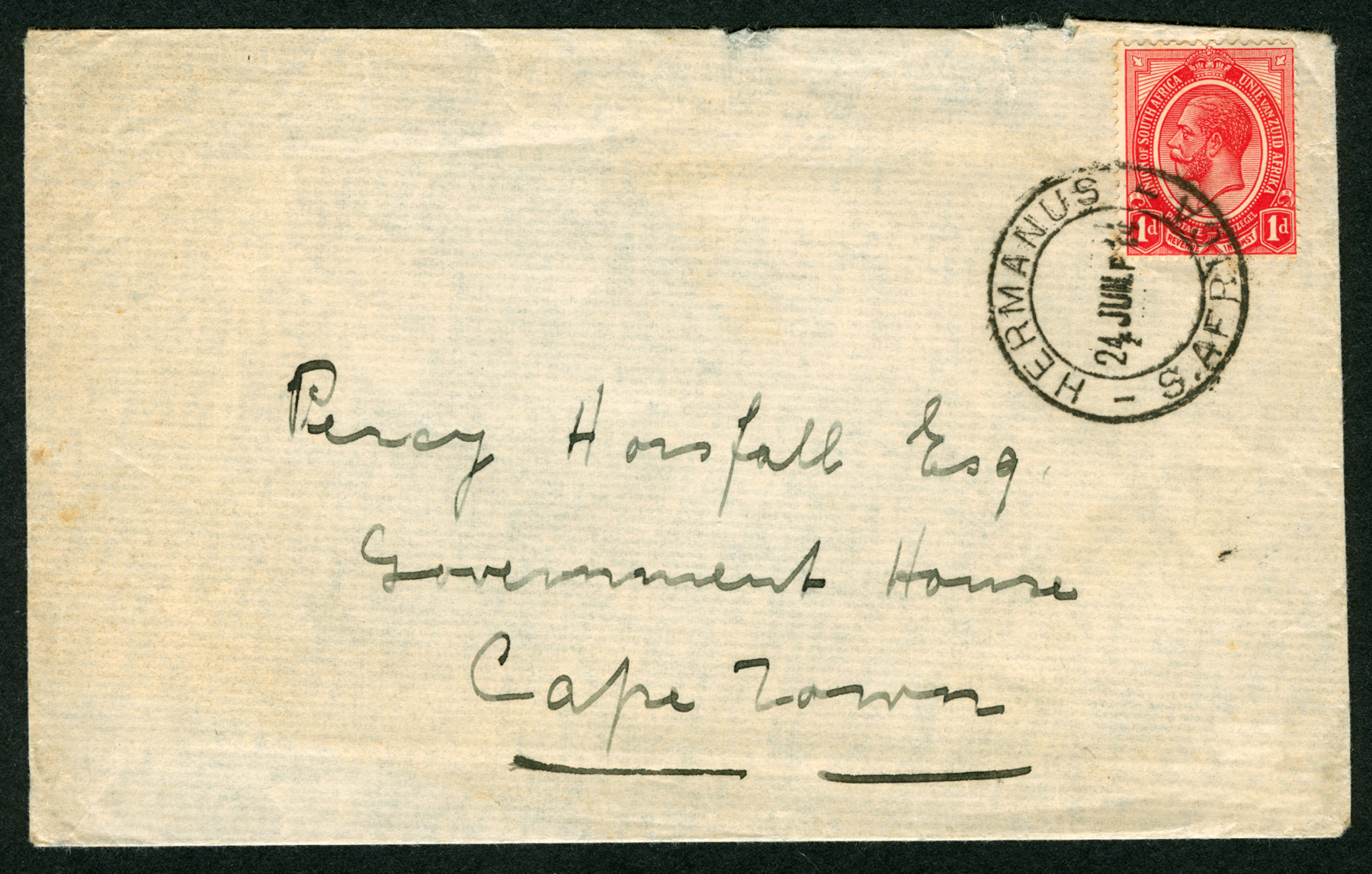1914. Cover. HERMANUS '24 JUN 14' to CAPE TOWN.