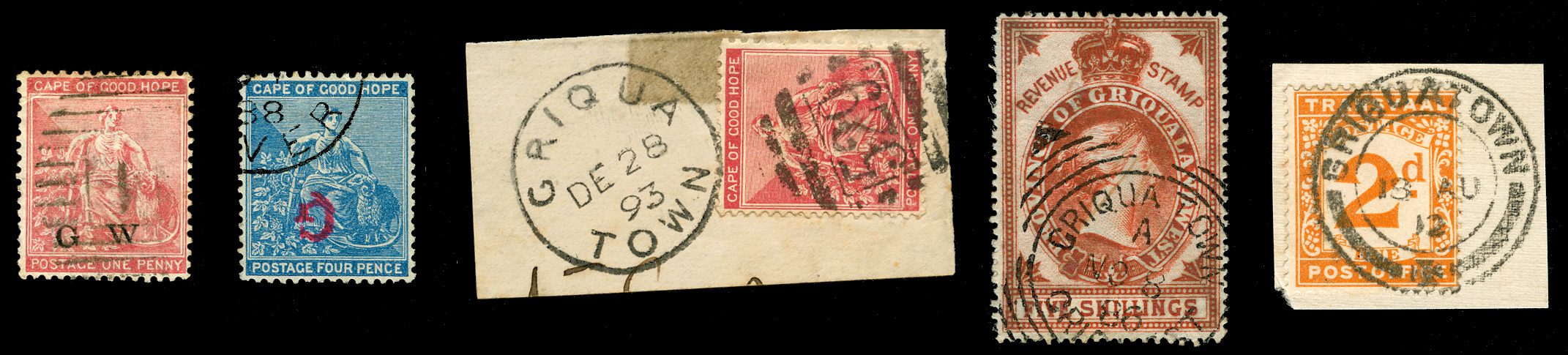 A very brief look at some of the Stamps and Postmarks of Griquatown 1886 - 1912. From left: