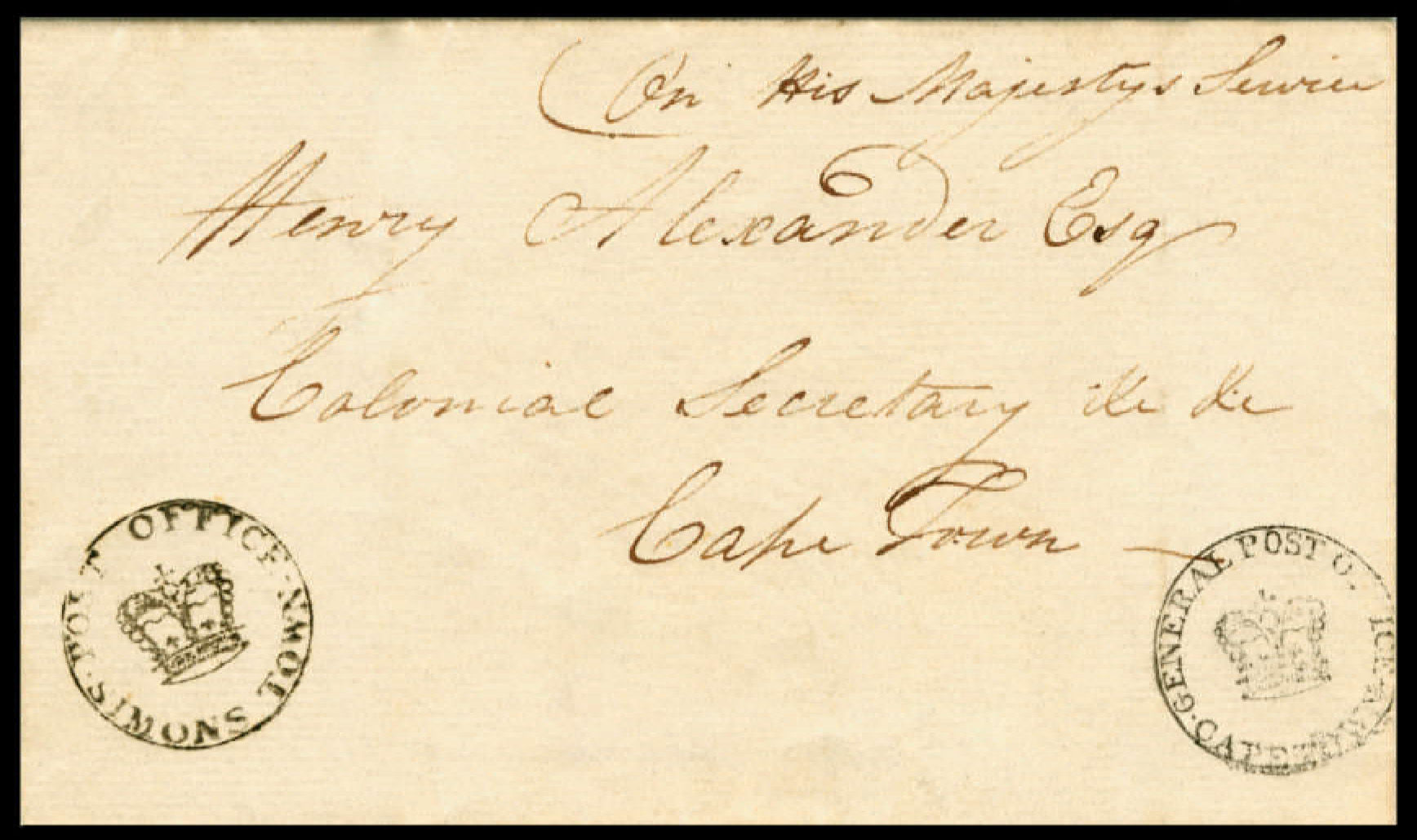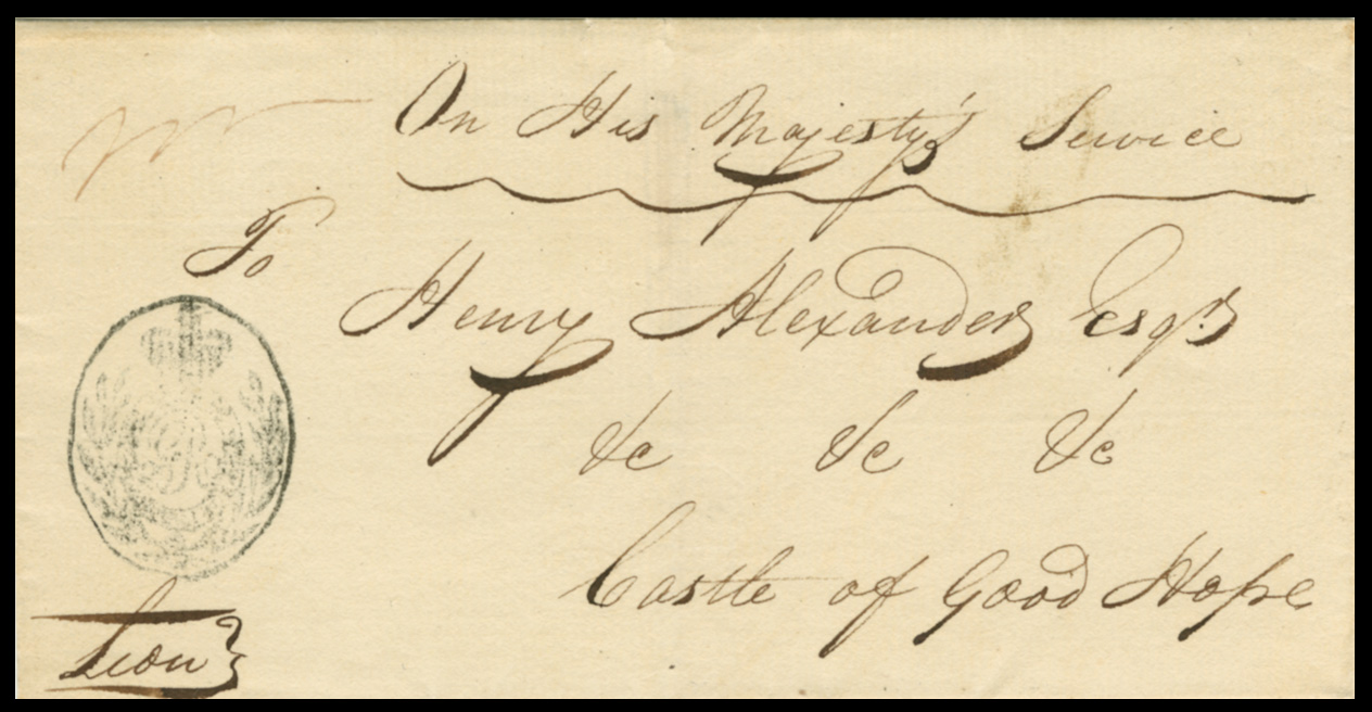 Circa 1818. Undated cover from SIMONSTOWN to CAPE TOWN addressed to Colonial Secretary Henery Alexander.