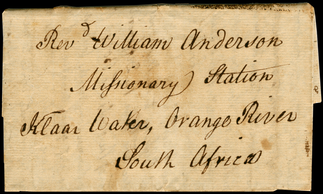 Addressed to the Revd William Anderson at the LMS Missionary Station, Klaarwater.