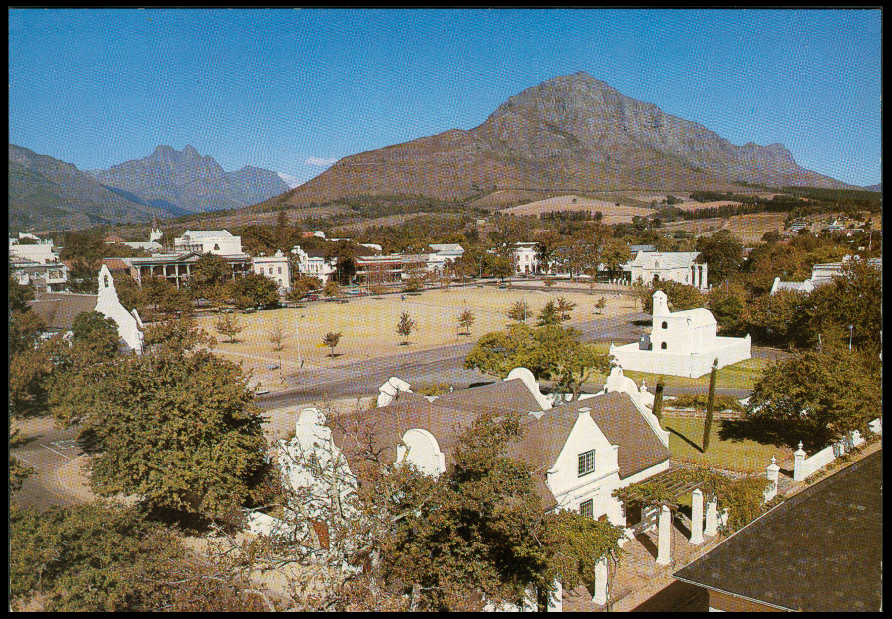 Circa 1985. Postcard. Unused. 'Die Braak with Burgerhuis in the foreground, Stellenbosch'. (NPD.)