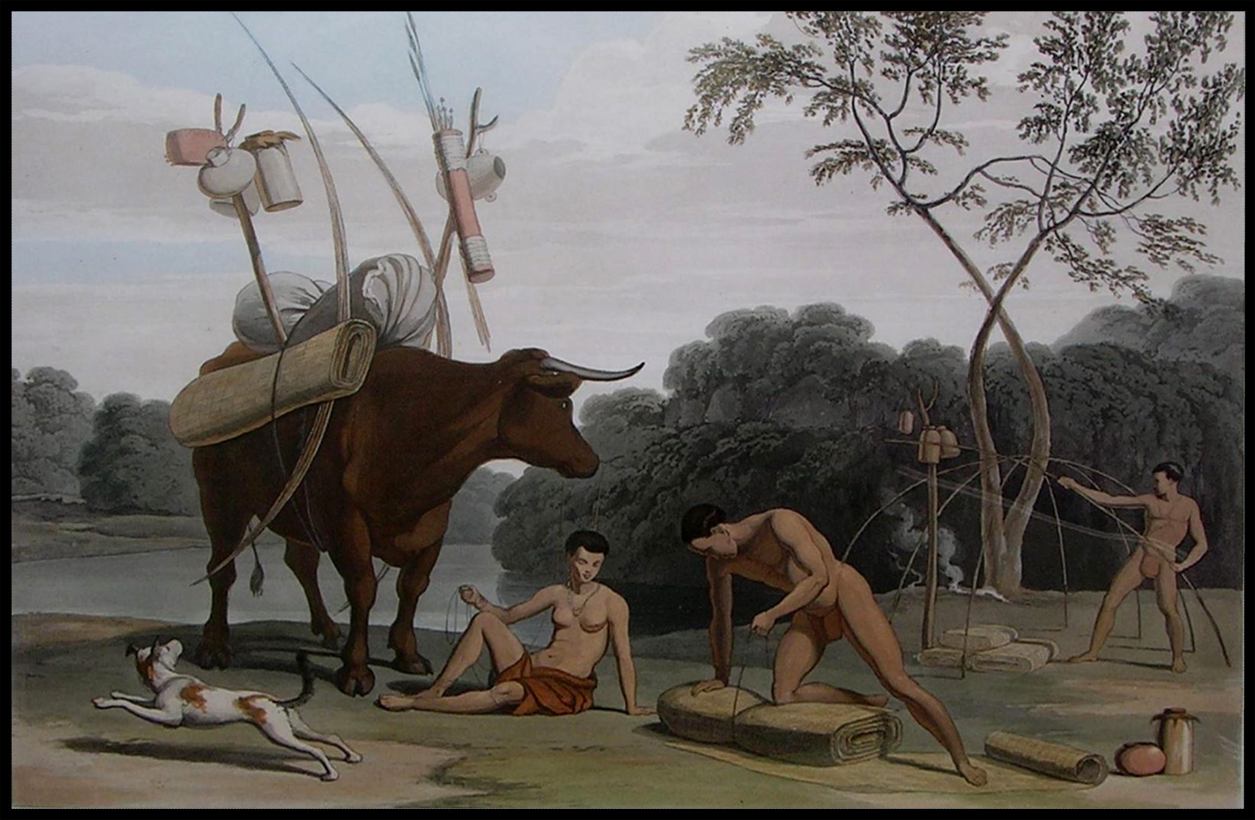 1805. Early SA Campers in Paradise. The Khoi preparing to move camp.