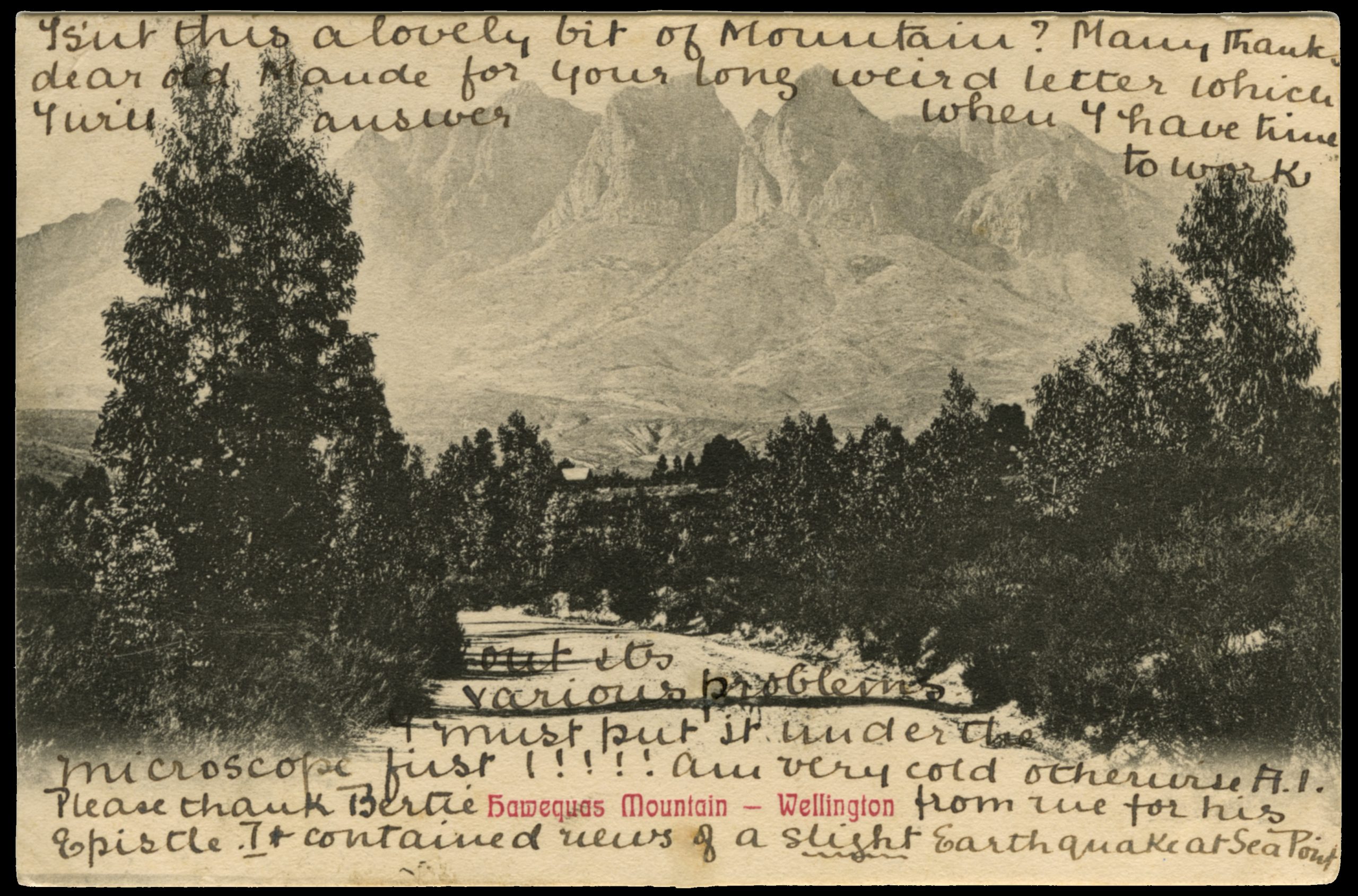 1906. Postcard. 'Hawequas Mountain - Wellington'.