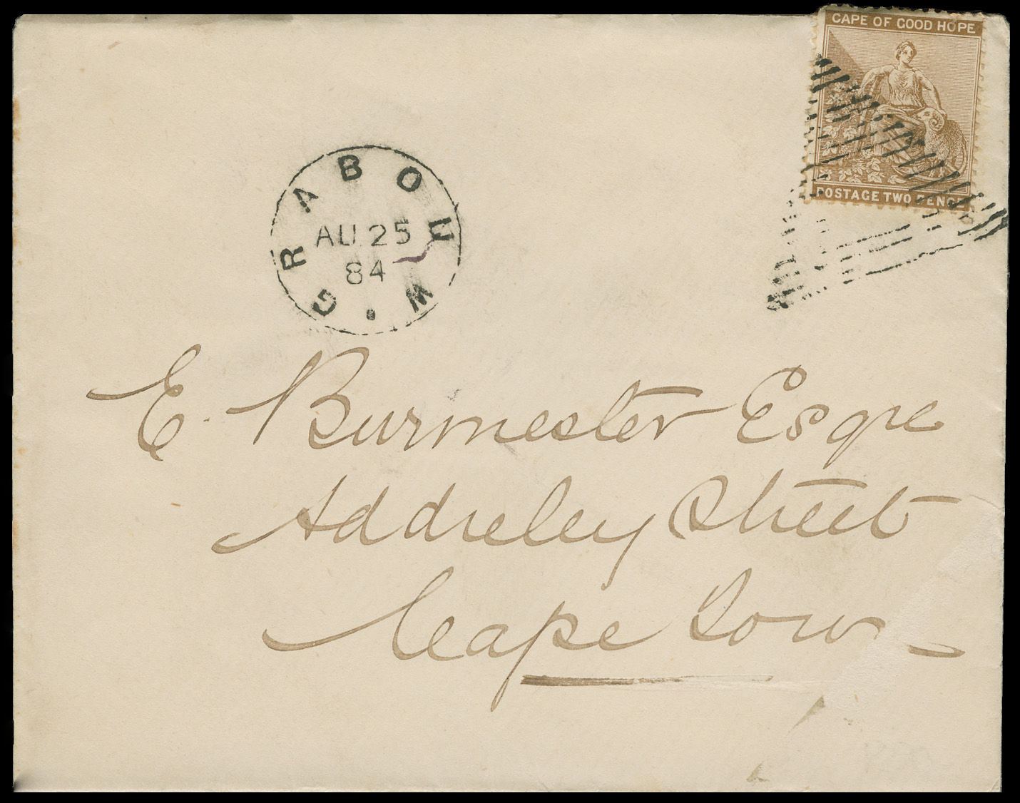 1878. Cover. GRABOUW 'AU 25 84' to CAPE TOWN.