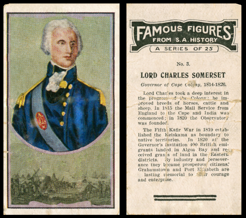 Circa. 1940. Cigarette Card. Lord Charles Somerset, Governor of the Cape, 1814 - 1826.