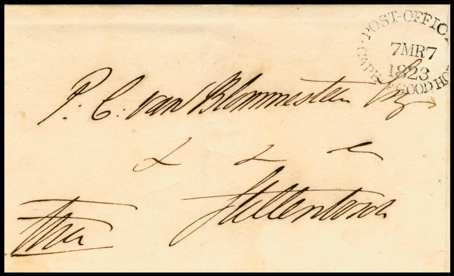 1823. Cover. CAPE TOWN '7 MR 7 1823' to STELLENBOSCH.