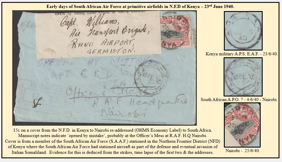 Further to your second last item - "Early days of SAAF at primitive airfields in NFD of Kenya", I am reminnded of my National Srrvice in the northern Transvaal in 1969 at a place aclled Greefswald, today's Mapangupwe National Park. We were the first unit into the area after the Engineers had flattened a primitive airstrip in the bush using bulldozers and built a basic hilltop camp fed with water from the Limpopo. The vegetation was awesome, as was the fauna. Politcis aside for once, it was the best worst time of my life, a real Boys Own adventure. I had never been in Africa before despite growing up in Cape Town. My uncle was one of those Springbok UDF troops who went to Kenya who came home with legendary tales of his time in Italian East Africa. However, the war in Italy left him scarred.