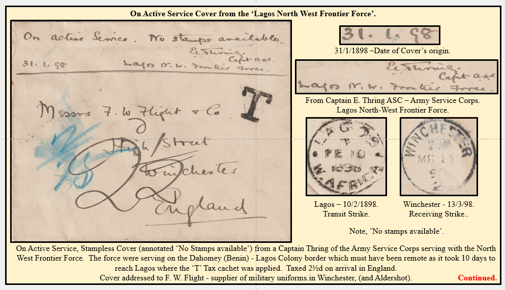 MenuForum NavigationForumMembersActivityLoginRegisterForum breadcrumbs - You are here:South African Philately Club ForumMember Forum: Jamie Smith's ColumnLagosColony.Please Login or Register to create posts and topics.LagosColony.Jamie Smith5,415 Posts#1 · April 19, 2024, 12:02 pmQuote from Jamie Smith on April 19, 2024, 12:02 pmLagos North West Frontier Force. Lagos North West Frontier Force. Uploaded files: Post Reply: LagosColony. Cancel
