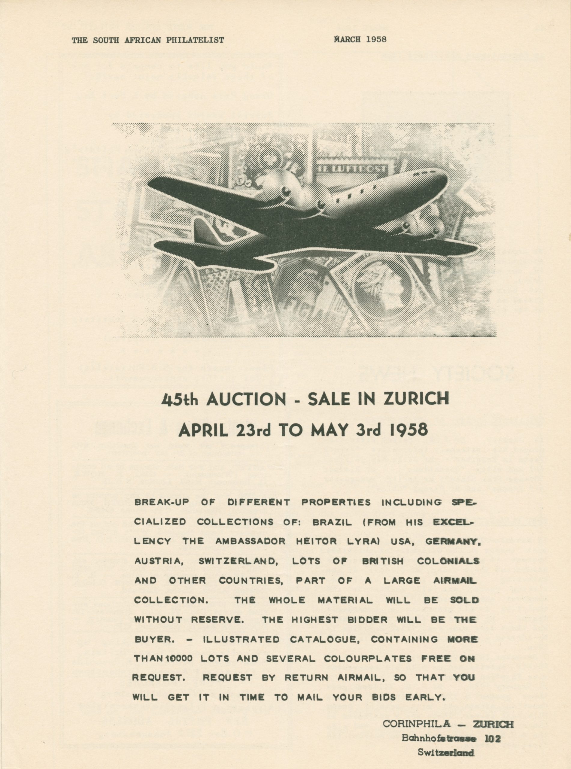 For those of you who do not know of Corinphilia, here is a full page ad they placed the the South African Philatelist in March 1958, 67 years ago.