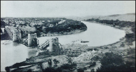During the 1899 South African War, the Republican forces occupied the northern hills surrounding Colenso which lay on the opposite south bank of the Tugela river. In order to relieve Ladysmith the British had to first cross the Tugela, ideally using one of the two bridges at Colenso. Commandant General Joubert reluctantly gave the order to dynamite the railway bridge in 28th November 1899. The bridge, originally built over the Tugela river in 1885 was a strategic crossing point that was demolished to hinder British forces.