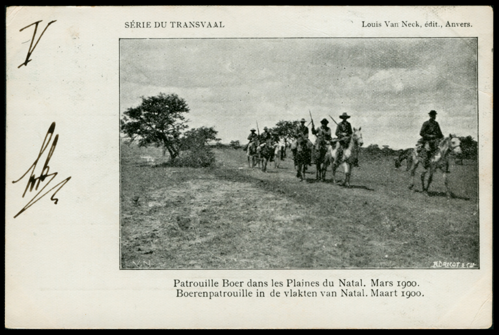 Quote from Steve on November 23, 2025, 12:45 pmI found this postcard in a lot of material that I bought at auction. It is not particularly remarkable but it does have something to say. The subject is a 'Boer Patrol on the Plains of Natal in March 1900'. It suggest perhaps that the Republican forces in Natal are advancing. It would be a nice item to include as an image in any display on the Boer invasion of Natal and the early success that they enjoyed there.